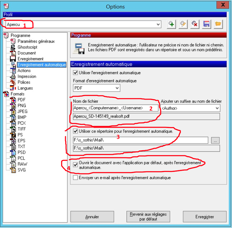 - il faut parametrer pour chaque utilisateur dans options de pdfcreator un profil "Apercu" avec